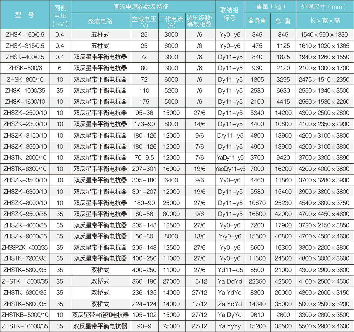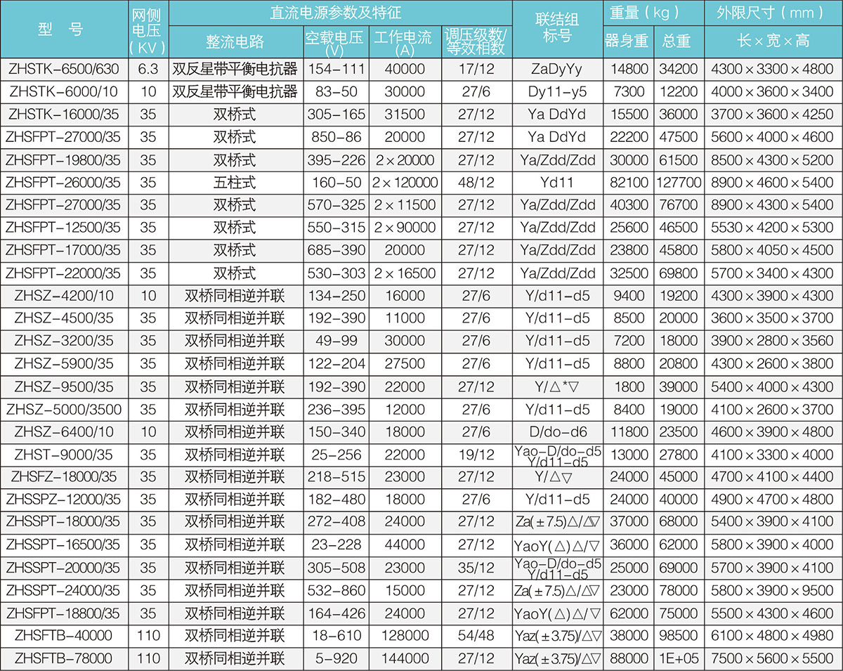 電化學整流變壓器用于電解有色金屬,電解食鹽以制取氯堿、電解水以制取氫和氧。它具有以下特點: